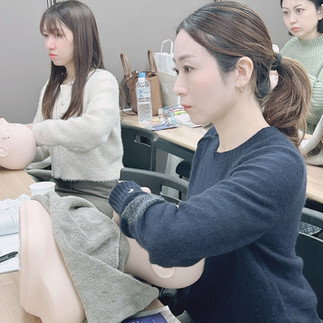 デコルテ•ヘッド•フェイシャルマッサージの相互実習では手技を確認しながらすすめていきました。